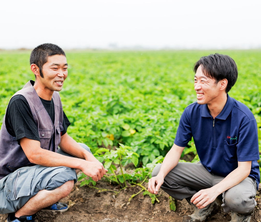 東北エリアでは、じゃがいもの栽培が初めてという契約生産者も多くいらっしゃいます。だからこそ、じゃがいも栽培に関する様々な説明会や講習会を行い、基礎知識をお伝えしたり、畑で一緒に手を動かしながら指導することを大切にしています。安心感を持っていただけるようにこまめに電話やメールで連絡を取り、生育状況や気象情報を共有することを意識しています。収量アップや品質向上の成果が数字となって返ってきたときや、契約生産者から「あなたに支えてもらって本当によかった」と言われる瞬間が、私にとって最大の喜びです。そうしたやりとりを重ね、契約生産者と生産側と調達側を超えた“パートナー”としての信頼関係を築いています。